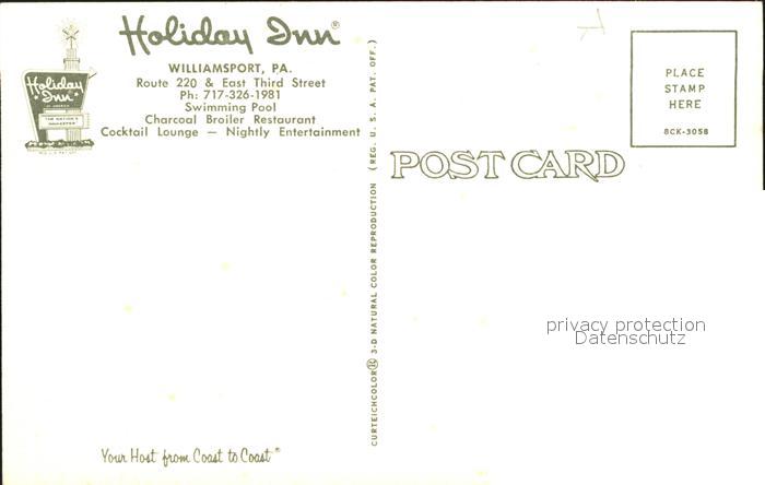 71919111 Williamsport Pennsylvania Holiday Inn postalisch nicht gelaufen Erhaltung siehe scans KatCode: 14140410000000