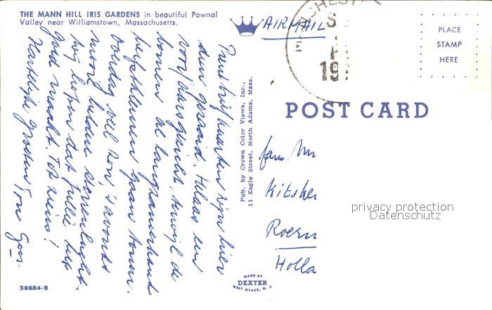72272861 old postcard Williamstown Massachusetts Mann Hill Iris Gardens postalisch gelaufen Erhaltung siehe scans KatCode: 14140230000000