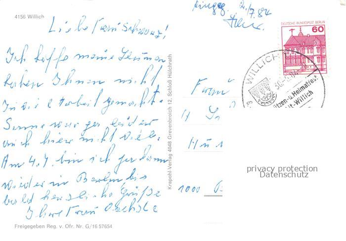 74106384 alte Postkarte Willich Stadtzentrum mit Kirche postalisch gelaufen Fliegeraufnahme Erhaltung siehe scans [FriedD77] KatCode: 11110005166036