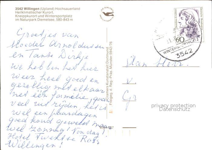 72223510 alte Postkarte Willingen Sauerland postalisch gelaufen Erhaltung siehe scans KatCode: 11110006635022
