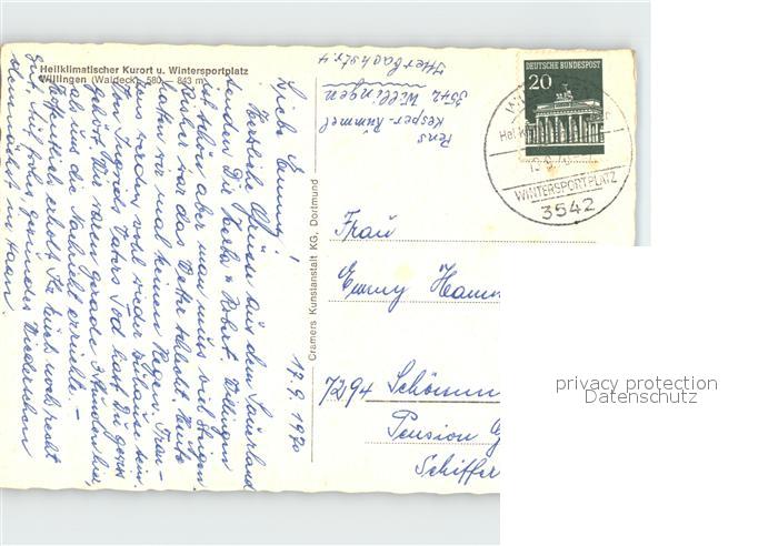 72218783 alte Postkarte Willingen Sauerland postalisch gelaufen Erhaltung siehe scans KatCode: 11110006635022