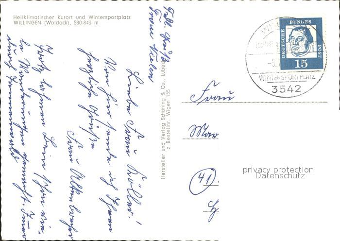 72200380 alte Postkarte Willingen Sauerland postalisch gelaufen Erhaltung siehe scans KatCode: 11110006635022