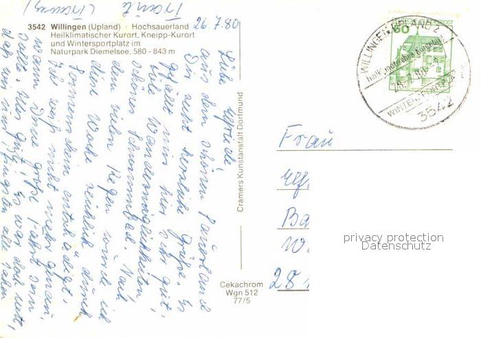 72856164 alte Postkarte Willingen Sauerland postalisch gelaufen Erhaltung siehe scans [NatalD47] KatCode: 11110006635022