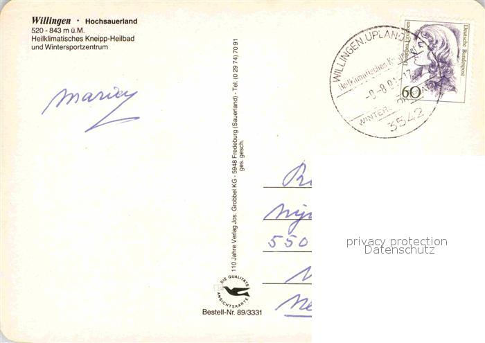 72842598 alte Postkarte Willingen Sauerland postalisch gelaufen Erhaltung siehe scans [NatalD47] KatCode: 11110006635022