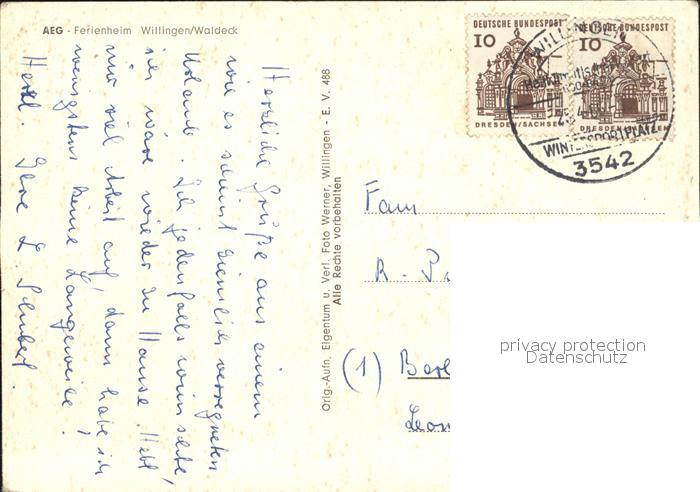 72444325 alte Postkarte Willingen Sauerland AEG- Ferienheim postalisch gelaufen Erhaltung siehe scans KatCode: 11110006635022