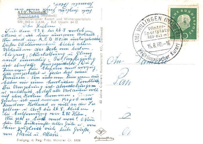 73940023 alte Postkarte Willingen Sauerland AEG-Ferienheim postalisch gelaufen Fliegeraufnahme Erhaltung siehe scans [FriedD77] KatCode: 11110006635022