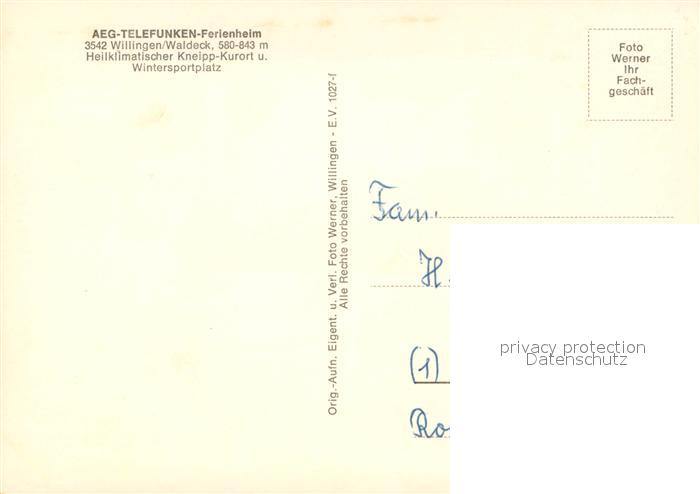 73651837 Willingen Sauerland AEG Telefunken Ferienheim Restaurant postalisch nicht gelaufen Erhaltung siehe scans [FriedD77] KatCode: 11110006635022
