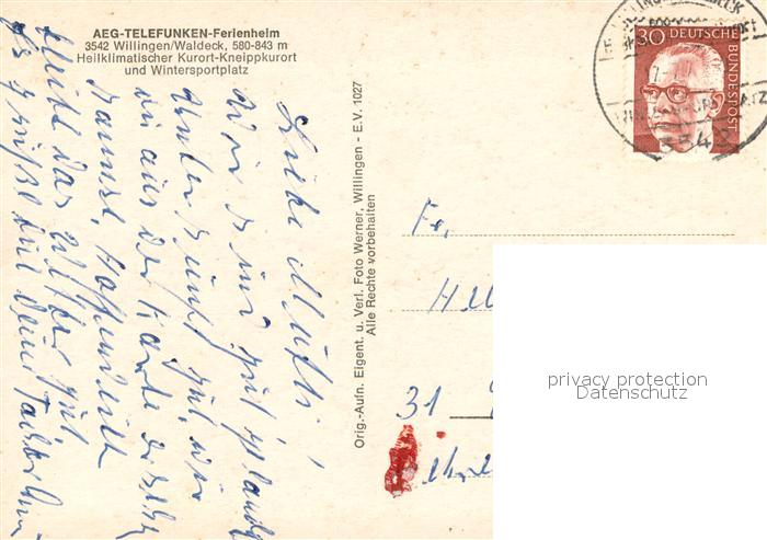 73660369 alte Postkarte Willingen Sauerland AEG Telefunken Ferienheim Speisesaal Aufenthaltsraum postalisch gelaufen Erhaltung siehe scans [FriedD77] KatCode: 11110006635022