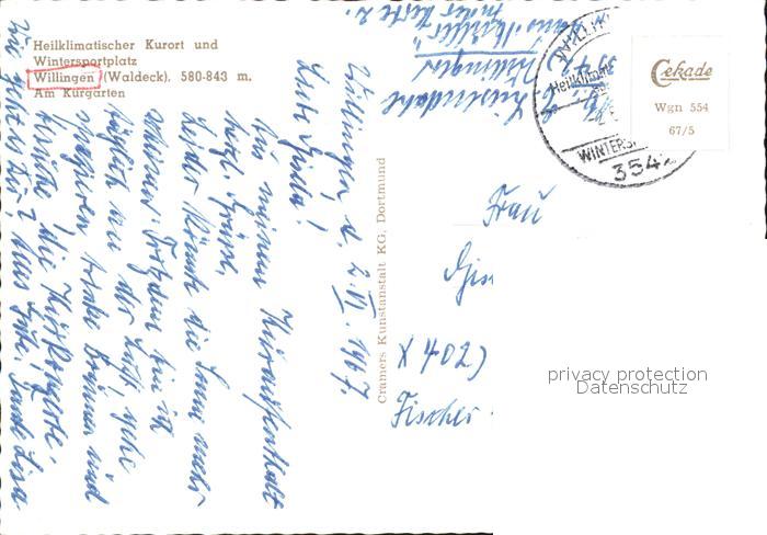 72535509 alte Postkarte Willingen Sauerland Am Kurgarten postalisch gelaufen Erhaltung siehe scans [AndreD76 kt121box] KatCode: 11110006635022