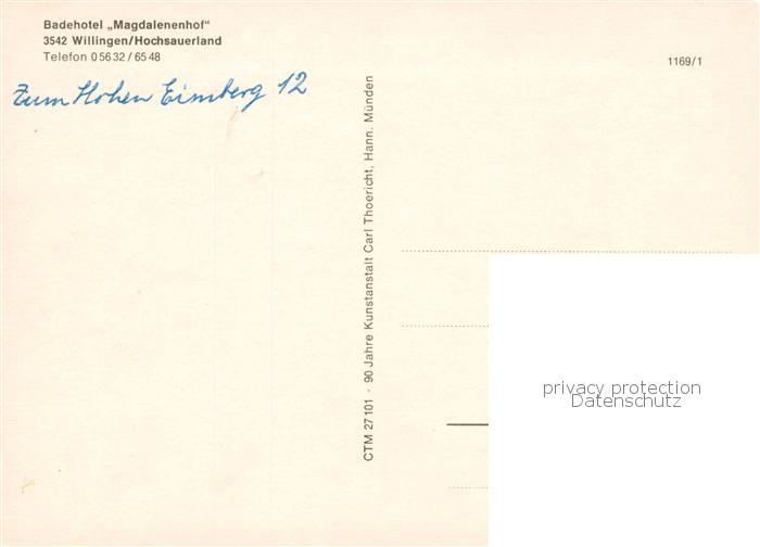 73873987 Willingen Sauerland Badehotel Magdalenenhof postalisch nicht gelaufen Erhaltung siehe scans [WerneD78] KatCode: 11110006635022