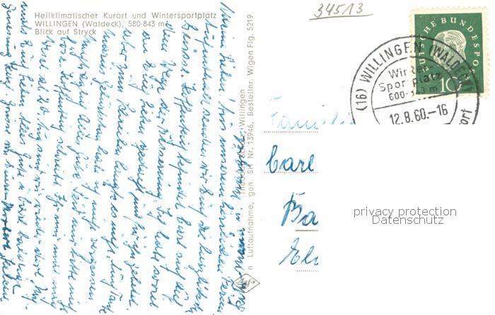 73763159 alte Postkarte Willingen Sauerland Blick auf Stryck postalisch gelaufen Erhaltung siehe scans [LiesaD40] KatCode: 11110006635022
