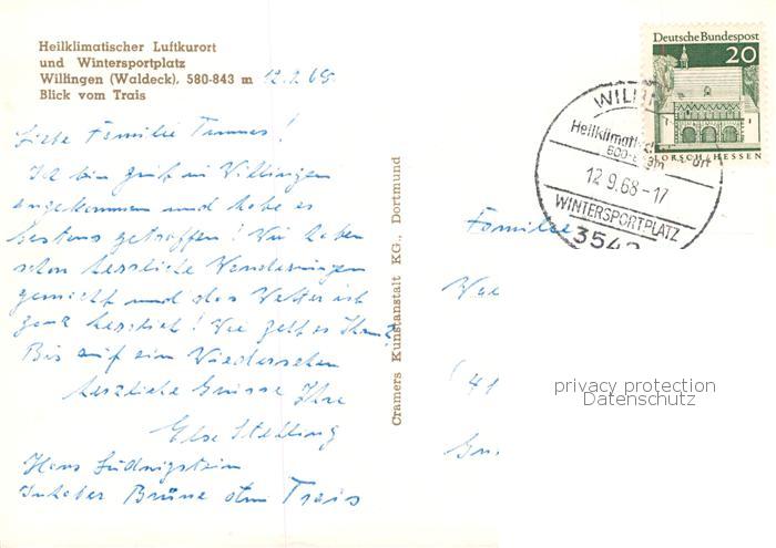 73814312 alte Postkarte Willingen Sauerland Blick vom Trais postalisch gelaufen Erhaltung siehe scans [FriedD77] KatCode: 11110006635022