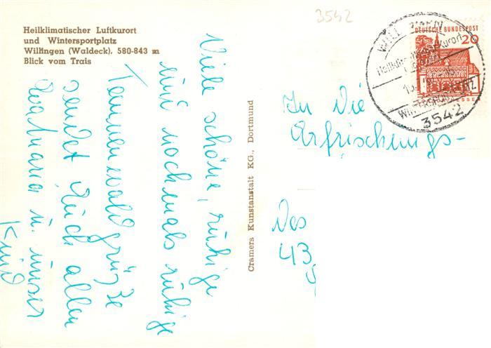 73935441 alte Postkarte Willingen Sauerland Blick vom Trais postalisch gelaufen Erhaltung siehe scans [FriedD77] KatCode: 11110006635022