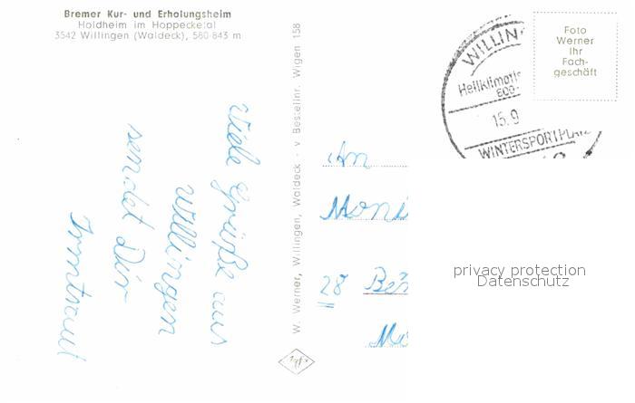72794994 alte Postkarte Willingen Sauerland Bremer Kurhaus- und Erholungsheim postalisch gelaufen Erhaltung siehe scans [AndreD76] KatCode: 11110006635022