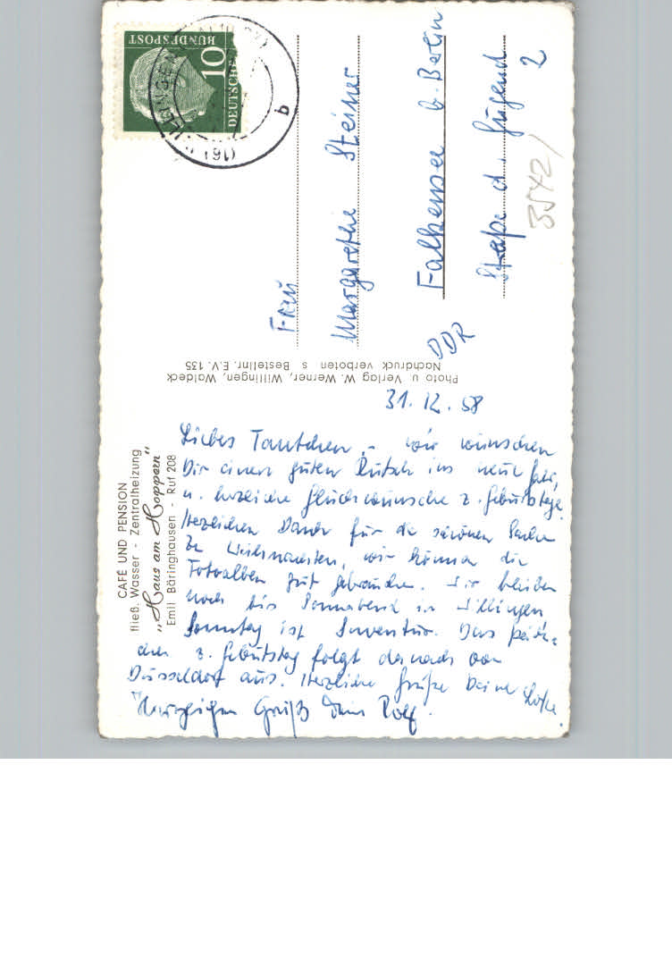 31132078 Willingen Sauerland Cafe – Pension Haus am Hoppern postalisch nicht gelaufen KatCode: 11110006635022