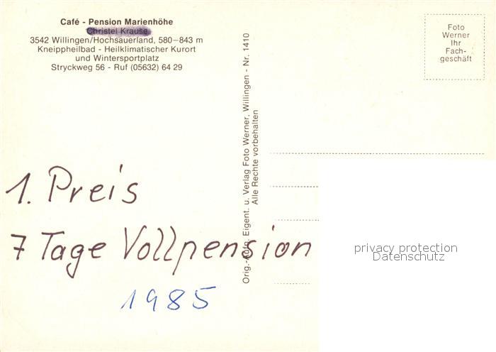 73542362 Willingen Sauerland Cafe Pension Haus Marienhoehe postalisch nicht gelaufen Erhaltung siehe scans [KathaD81] KatCode: 11110006635022