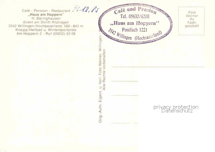72877114 Willingen Sauerland Cafe Pension Restaurant Haus am Hoppern Winterpanorama postalisch nicht gelaufen Erhaltung siehe scans [FriedD77] KatCode: 11110006635022