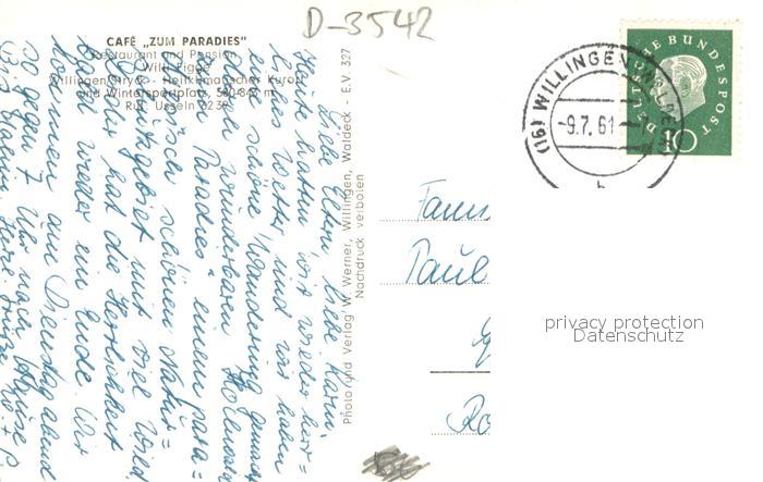 73702363 alte Postkarte Willingen Sauerland Cafe Zum Paradies postalisch gelaufen Erhaltung siehe scans [LiesaD40] KatCode: 11110006635022