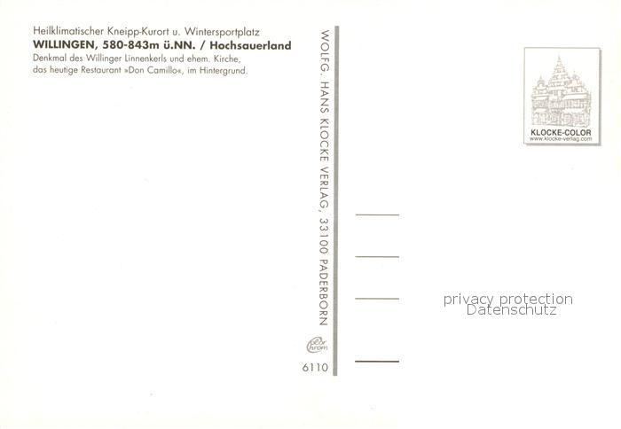 73177659 Willingen Sauerland Denkmal Willinger Linnenkerl ehem. Kirche heute Restaurant postalisch nicht gelaufen Erhaltung siehe scans [FriedD77] KatCode: 11110006635022