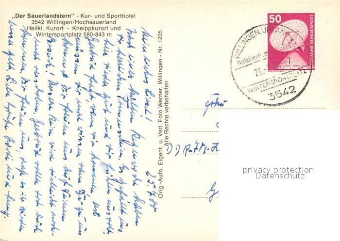 73211075 alte Postkarte Willingen Sauerland Der Sauerlandstern Kur und Sporthotel Fliegeraufnahme postalisch gelaufen Erhaltung siehe scans [WerneD78] KatCode: 11110006635022