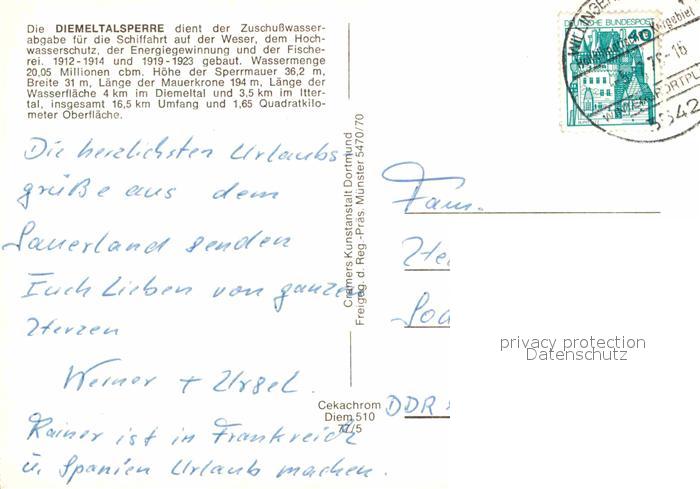 72902591 alte Postkarte Willingen Sauerland Diemeltalsperre Fliegeraufnahme postalisch gelaufen Erhaltung siehe scans [FriedD77] KatCode: 11110006635022