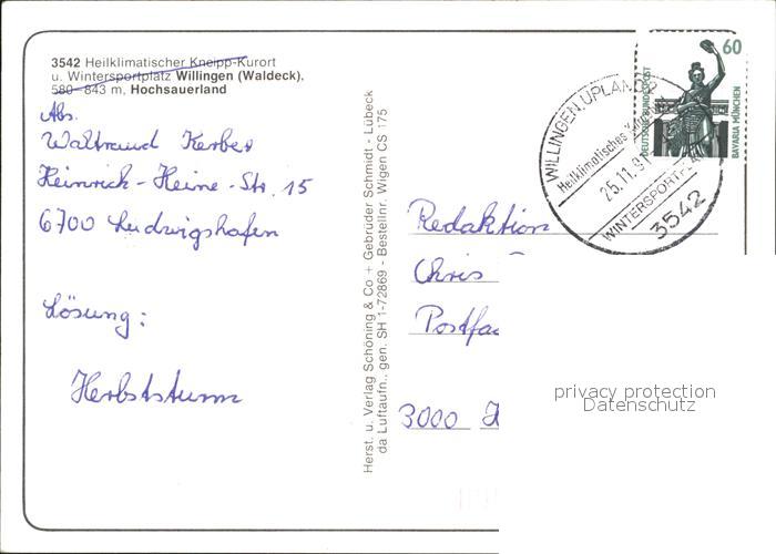 72465682 alte Postkarte Willingen Sauerland Fliegeraufnahme postalisch gelaufen Erhaltung siehe scans KatCode: 11110006635022