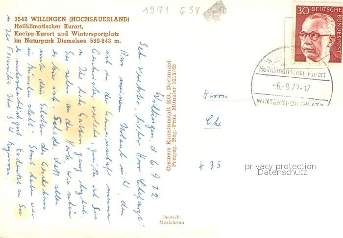 73205841 alte Postkarte Willingen Sauerland Fliegeraufnahme postalisch gelaufen Erhaltung siehe scans [NatalD47] KatCode: 11110006635022