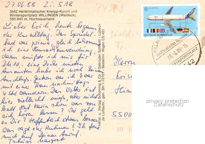 73100037 alte Postkarte Willingen Sauerland Fliegeraufnahme postalisch gelaufen Erhaltung siehe scans [WerneD78] KatCode: 11110006635022