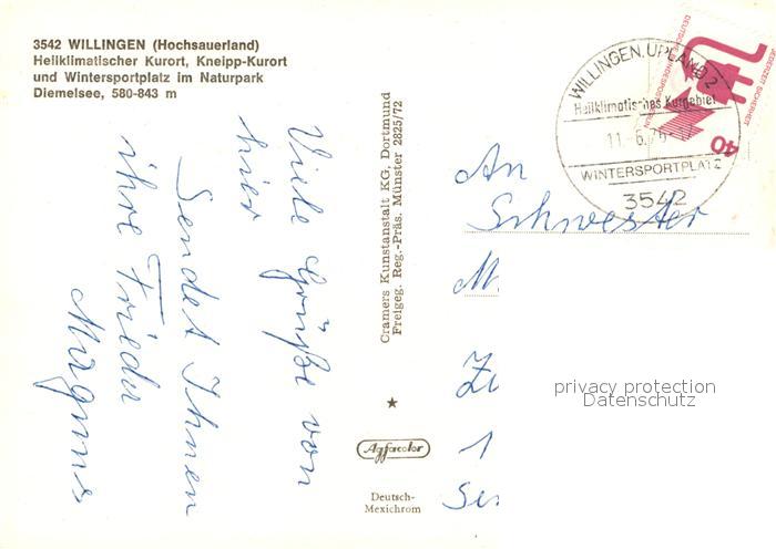 73090400 alte Postkarte Willingen Sauerland Fliegeraufnahme postalisch gelaufen Erhaltung siehe scans [NatalD47] KatCode: 11110006635022