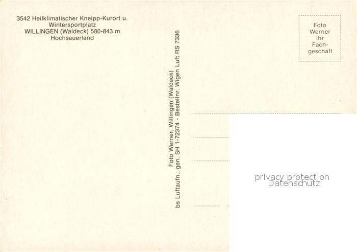 73088536 Willingen Sauerland Fliegeraufnahme postalisch nicht gelaufen Erhaltung siehe scans [NatalD47] KatCode: 11110006635022