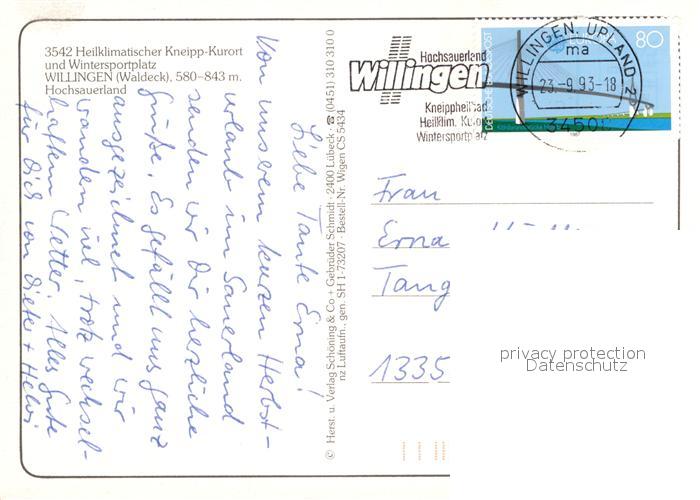 72991442 alte Postkarte Willingen Sauerland Fliegeraufnahme postalisch gelaufen Erhaltung siehe scans [LiesaD40] KatCode: 11110006635022
