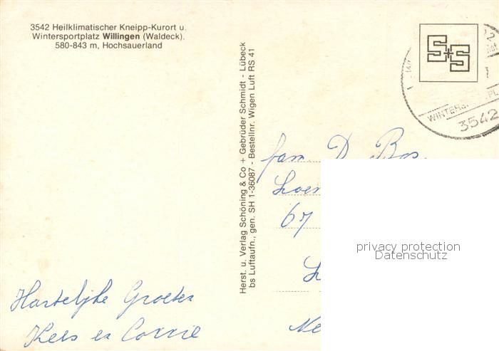 73776330 alte Postkarte Willingen Sauerland Fliegeraufnahme Gesamtansicht m. Zug-Bruecke postalisch gelaufen Erhaltung siehe scans [LiesaD40] KatCode: 11110006635022