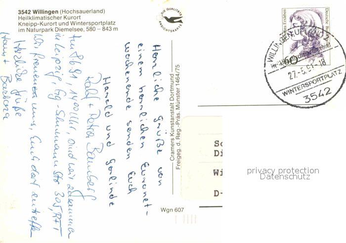 72727803 alte Postkarte Willingen Sauerland Fliegeraufnahme im Naturpark Diemelsee postalisch gelaufen Erhaltung siehe scans [LiesaD40] KatCode: 11110006635022