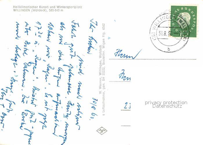 72822239 alte Postkarte Willingen Sauerland Fliegeraufnahme Viadukt postalisch gelaufen Erhaltung siehe scans [AndreD76] KatCode: 11110006635022