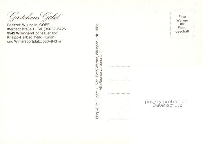 73047419 Willingen Sauerland Gaestehaus Goebel postalisch nicht gelaufen Erhaltung siehe scans [WerneD78] KatCode: 11110006635022