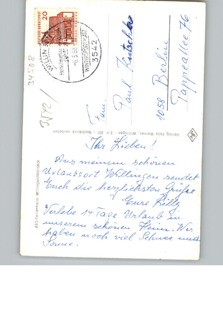 31131251 Willingen Sauerland Gasthaus postalisch nicht gelaufen KatCode: 11110006635022