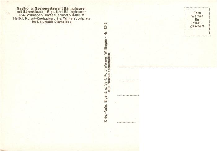 73935428 Willingen Sauerland Gasthof Baeringhausen mit Baerenklause Gastraeume Kueche Kegelbahn postalisch nicht gelaufen Erhaltung siehe scans [FriedD77] KatCode: 11110006635022