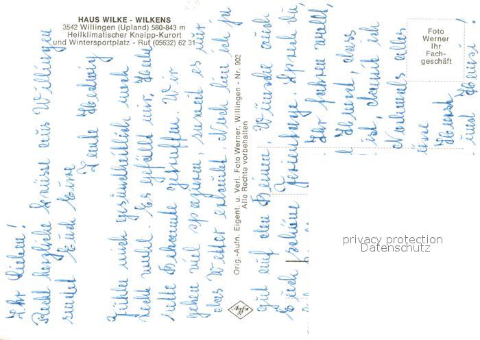 73644509 Willingen Sauerland Haus Wilke Wilkens Gaestehaus Pension postalisch nicht gelaufen Erhaltung siehe scans [FriedD77] KatCode: 11110006635022
