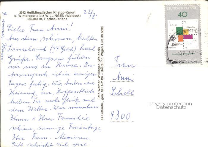 72135888 alte Postkarte Willingen Sauerland Heilklimatischer Kneipp Kurort Fliegeraufnahme postalisch gelaufen Erhaltung siehe scans KatCode: 11110006635022