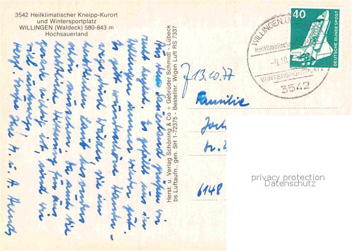 72878785 alte Postkarte Willingen Sauerland Heilklimatischer Kneippkurort Wintersportplatz Fliegeraufnahme postalisch gelaufen Erhaltung siehe scans [FriedD77] KatCode: 11110006635022