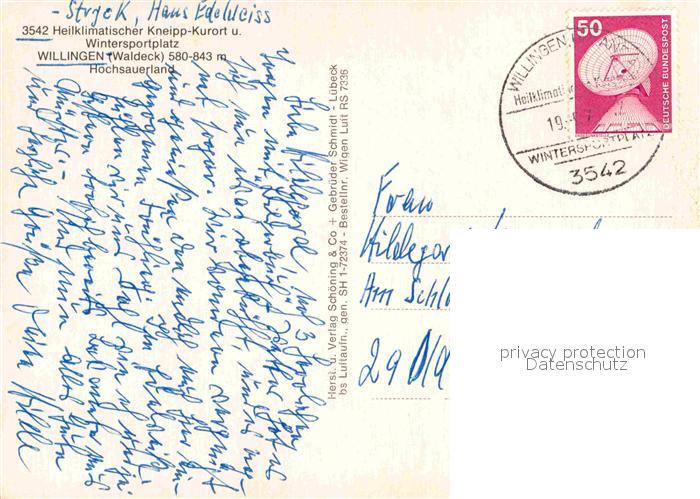 72877115 alte Postkarte Willingen Sauerland Heilklimatischer Kneippkurort Wintersportplatz Fliegeraufnahme postalisch gelaufen Erhaltung siehe scans [FriedD77] KatCode: 11110006635022