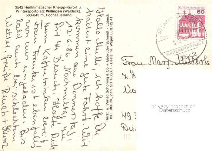 72687329 alte Postkarte Willingen Sauerland Heilklimatischer Kneippkurort Wintersportplatz Viadukt Fliegeraufnahme postalisch gelaufen Erhaltung siehe scans [FriedD77] KatCode: 11110006635022