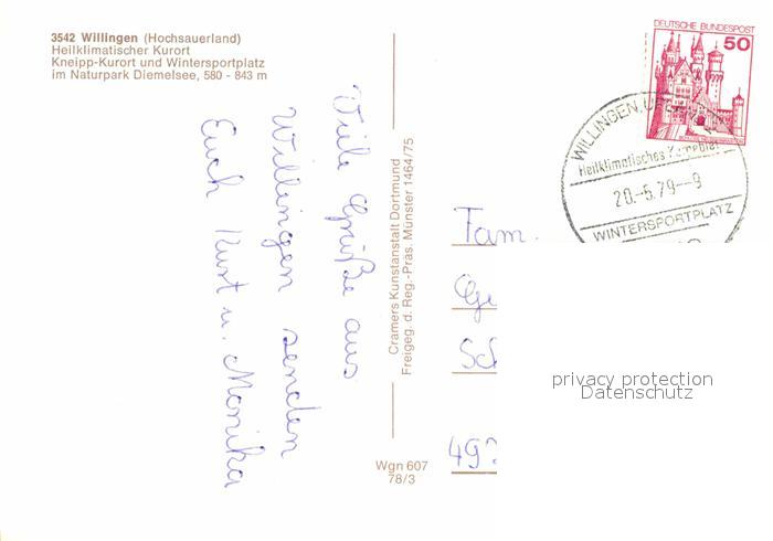 72780843 alte Postkarte Willingen Sauerland Heilklimatischer Kurort Wintersportplatz Naturpark Dieselsee Fliegeraufnahme postalisch gelaufen Erhaltung siehe scans [FriedD77] KatCode: 11110006635022