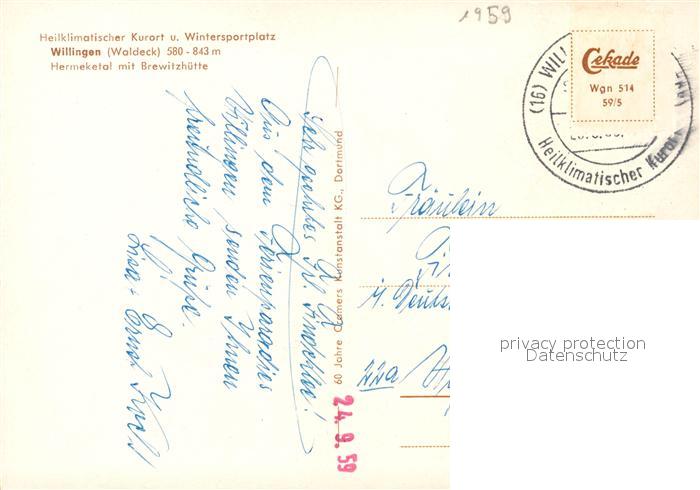73063927 alte Postkarte Willingen Sauerland Hermeketal mit Brewitzhuette postalisch gelaufen Erhaltung siehe scans [FriedD77] KatCode: 11110006635022