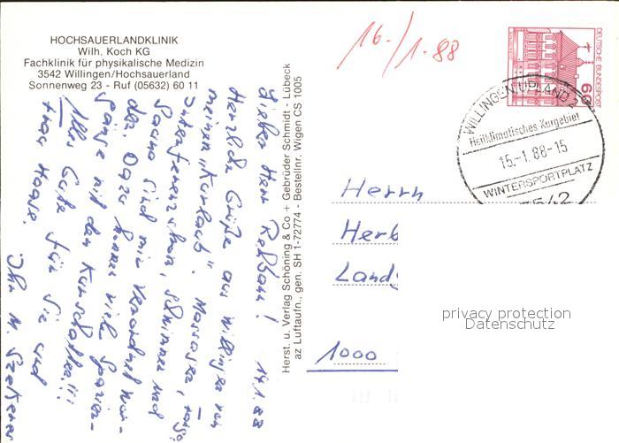 71951028 alte Postkarte Willingen Sauerland Hochsauerlandklinik Fliegeraufnahme postalisch gelaufen Erhaltung siehe scans KatCode: 11110006635022