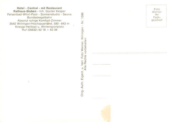73883823 Willingen Sauerland Hotel Central Restaurant Fremdenzimmer Hallenbad postalisch nicht gelaufen Erhaltung siehe scans [FriedD77] KatCode: 11110006635022