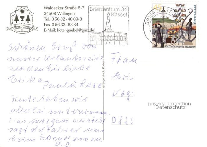 73323179 alte Postkarte Willingen Sauerland Hotel Goebel postalisch gelaufen Erhaltung siehe scans [LiesaD40] KatCode: 11110006635022
