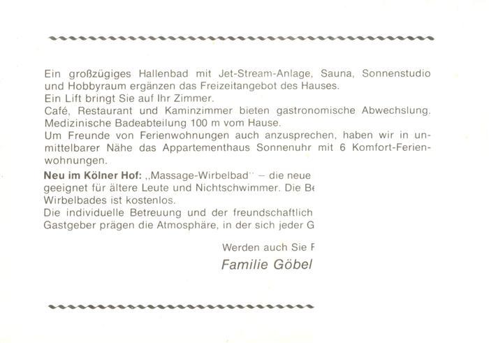 73924715 Willingen Sauerland Hotel Koelner Hof Gastraeume Hallenbad postalisch nicht gelaufen Werbekarte (keine Postkarte) Erhaltung siehe scans [WerneD78] KatCode: 11110006635022