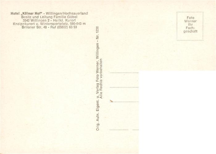 73935446 Willingen Sauerland Hotel Koelner Hof Gastraeume Hallenbad postalisch nicht gelaufen Erhaltung siehe scans [FriedD77] KatCode: 11110006635022