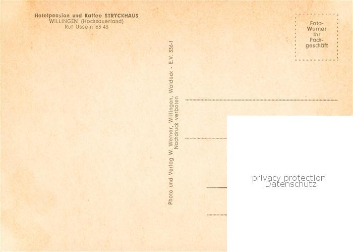 73865533 Willingen Sauerland Hotel Pension Kaffee Stryckhaus Gartenterrasse postalisch nicht gelaufen Erhaltung siehe scans [FriedD77] KatCode: 11110006635022
